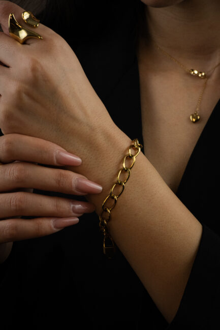 Γυναικείο βραχιόλι από ανοξείδωτο ατσάλι αρίστης ποιότητας, που το καθιστά ανθεκτικό στην υγρασία. Είναι υποαλλεργικό και δεν μαυρίζει.