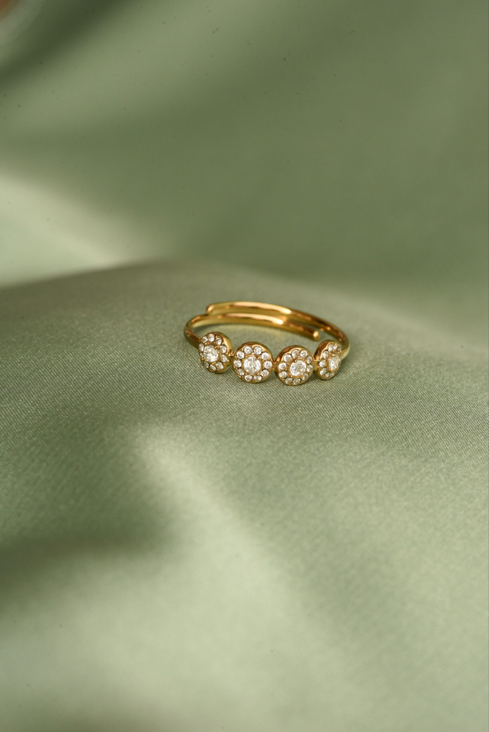 Το Four Moments of You είναι ένα δαχτυλίδι που ενώνει τέσσερις μικρές φωτεινές στιγμές σε μια γραμμή κομψότητας. Οι στρογγυλές πέτρες του δημιουργούν μια αρμονική, καθαρή λάμψη — σαν τέσσερα λεπτά που θέλεις να θυμάσαι για πάντα.