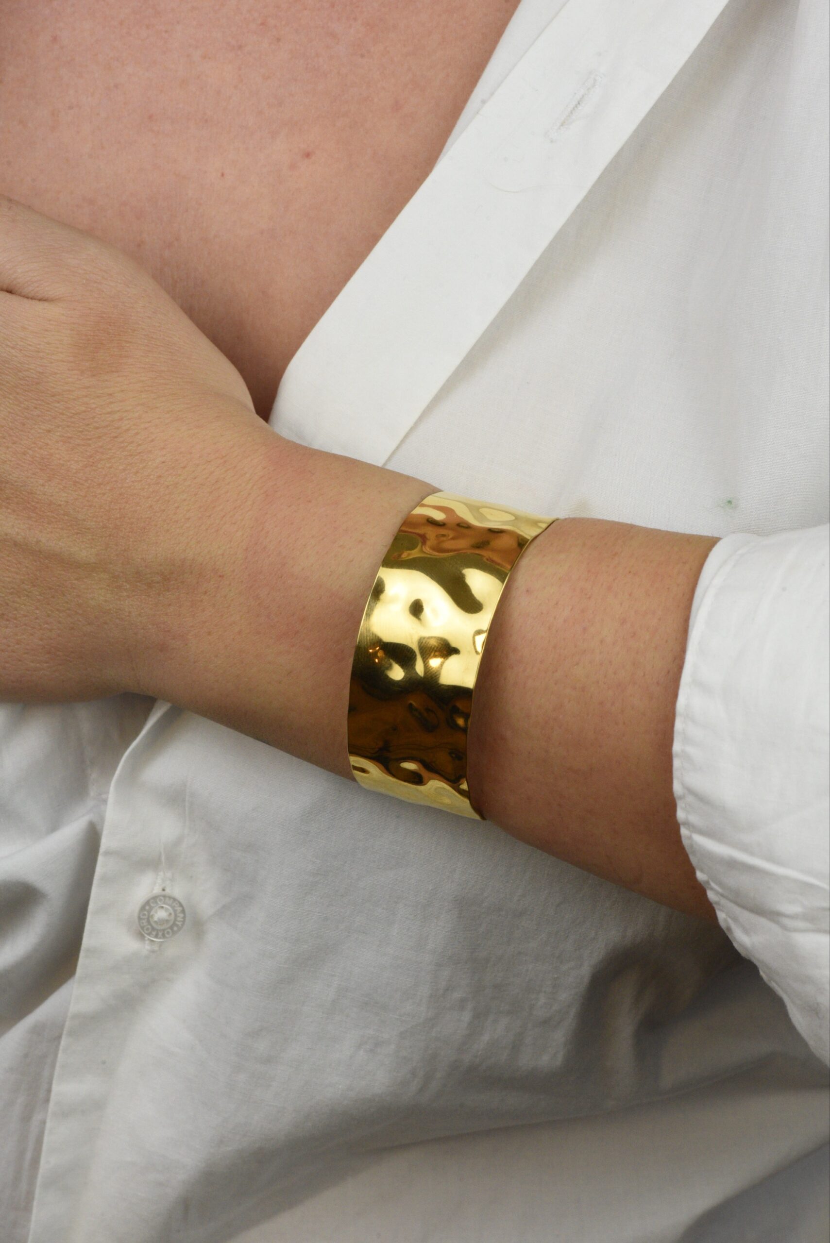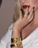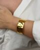 Χρυσό, ρυθμιζόμενο βραχιόλι από υψηλής ποιότητας επιχρυσωμένο ατσάλι. Ένα κομψό κόσμημα που αγκαλιάζει τον καρπό με διακριτική φινέτσα.