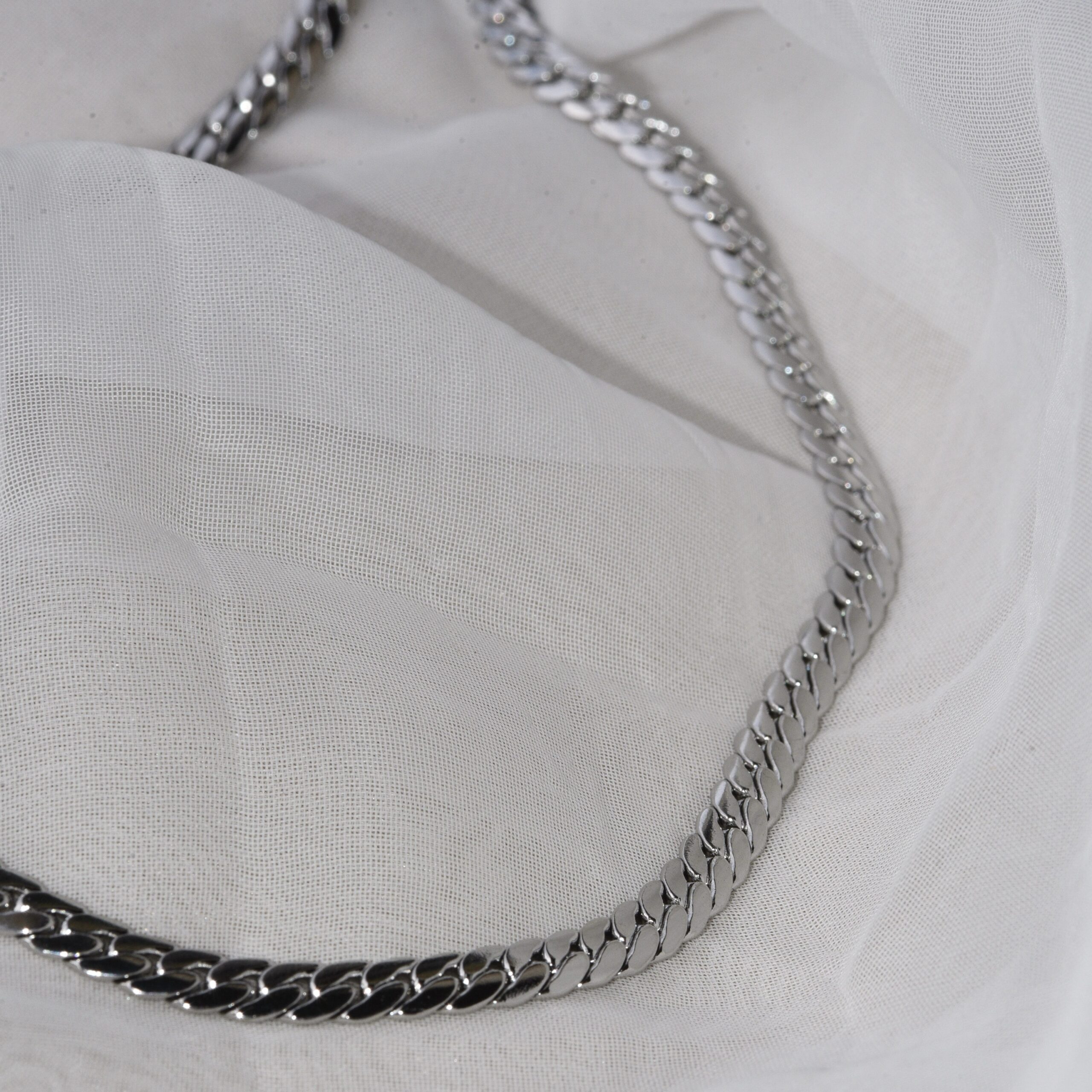 Αντρική αλυσίδα σε εφέ snake, ασημένια, με μοντέρνο και δυναμικό design που αγκαλιάζει το στυλ του σύγχρονου άντρα. Η ελαστική, snake-like υφή προσδίδει χαρακτήρα και κίνηση στην αλυσίδα, ενώ η κατασκευή από υψηλής ποιότητας ατσάλι εξασφαλίζει αντοχή και διαχρονική λάμψη. Ιδανική για καθημερινή χρήση ή για layering, προσθέτει ένα διακριτικά εντυπωσιακό στοιχείο σε κάθε εμφάνιση.